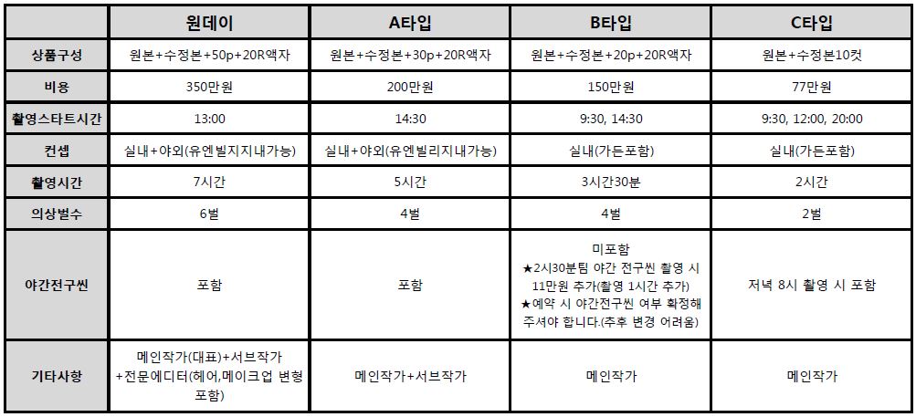 *오후 촬영팀 야간전구씬 촬영 시 11만원 추가(촬영 1시간 추가)